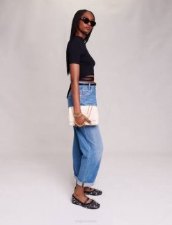 vêtements H604328 bleu clair femmes veste en jean avec strass Maje