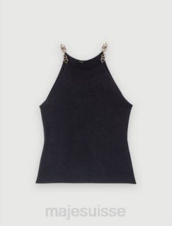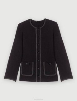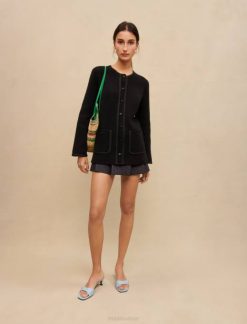 vêtements H604366 noir femmes veste style motard en cuir Maje