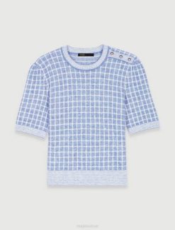 vêtements H60462 muguet écru/bleu femmes blouse ample aspect satiné Maje