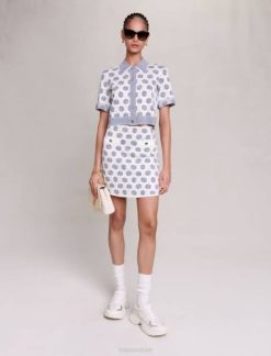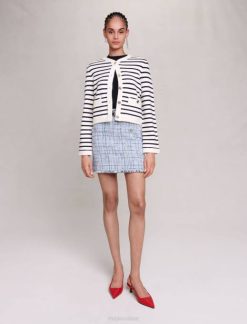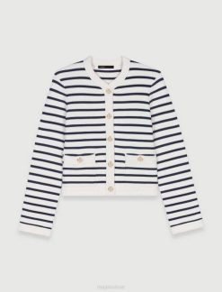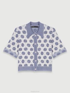vêtements H60475 monogramme trèfle écru/bleu femmes cardigan avec maille monogramme Maje