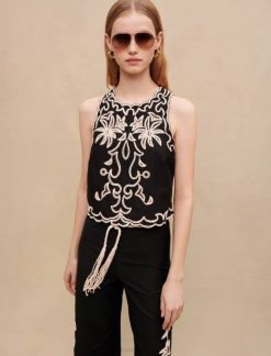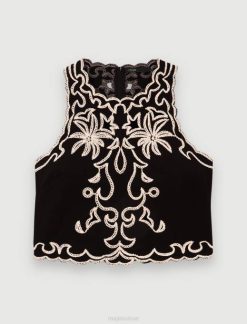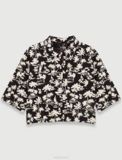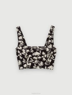 vêtements H604234 palmier noir femmes top court à imprimé palmiers Maje