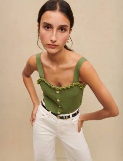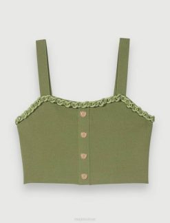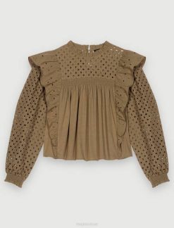 vêtements H604269 kaki femmes top en coton brodé à volants Maje