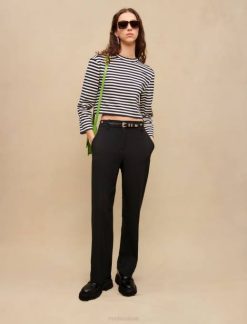 vêtements H604136 noir femmes pantalon ajusté avec ceinture Maje