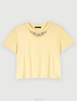 vêtements H604340 jaune femmes t-shirt en coton avec col bijou Maje