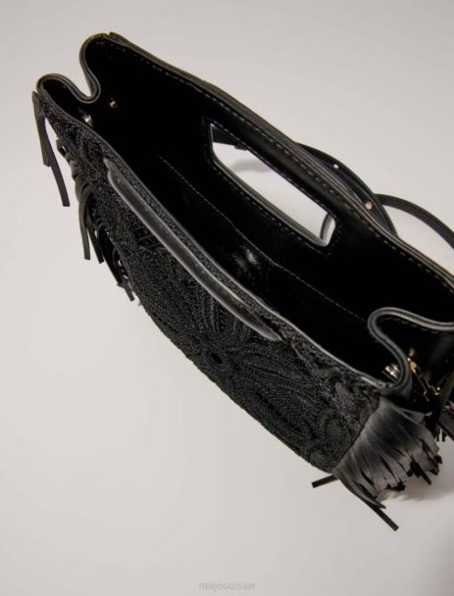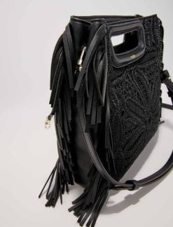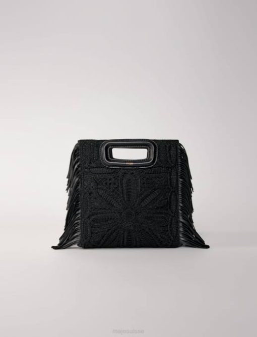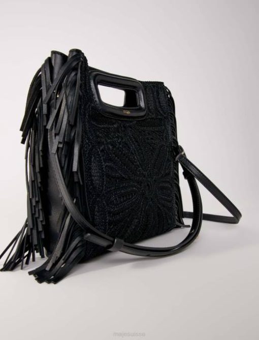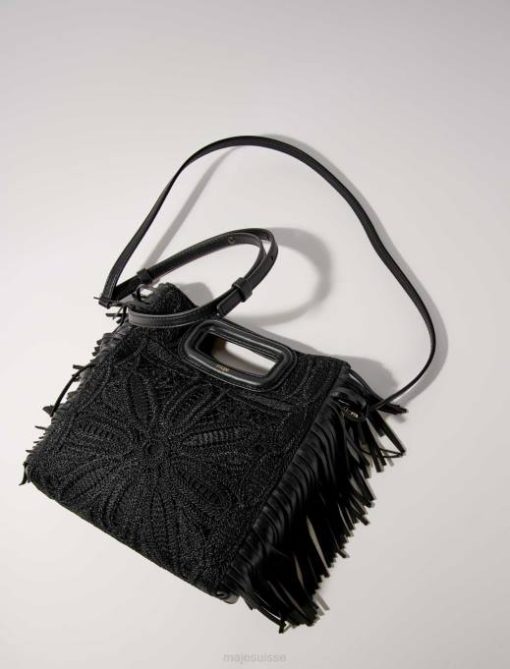 chaque saison, maje conçoit et crée des accessoires incontournables pour booster votre style. Le sac m iconique de Maje revient cette saison avec un motif au crochet. agrémenté de franges sur les côtés et d’une poignée recouverte, il présente un logo embossé et une signature gravée sur les mousquetons. il est doté d’une fermeture aimantée pratique et d’une bandoulière réglable et amovible qui peut être portée de différentes manières : à la main, à l’épaule ou en bandoulière.