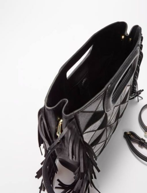 l’iconique sac maje m se décline dans une version mix patchwork de cuirs. franges, anse gainée, logo doré embossé, signature gravée sur les mousquetons. fermeture par languette magnétique. portez-le à l’épaule, à la main ou en bandoulière grâce à la bandoulière en cuir réglable et amovible.