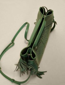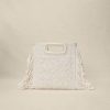 cette saison, l’iconique sac maje m se décline en cuir perforé façon broderie. il présente des franges sur les côtés, une poignée gainée, un logo doré embossé et une signature gravée sur les mousquetons. en plus de sa fermeture aimantée pratique, il offre une bandoulière réglable et amovible pour différentes possibilités de portage : à la main, à l’épaule ou en travers du corps.