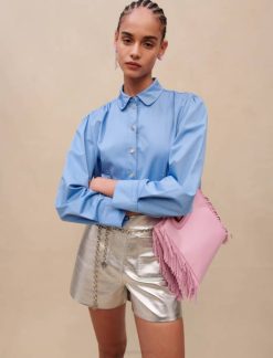 l’iconique sac maje m se décline en version cuir vinyle. franges, anse gainée, logo doré embossé, signature gravée sur les mousquetons. fermeture par languette magnétique. à porter épaule, main ou croisé grâce à la bandoulière en cuir réglable et amovible.