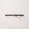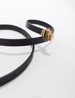 ceinture étroite en cuir lisse noir. boucle trèfle formée de ms en métal doré.