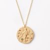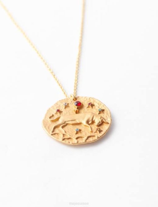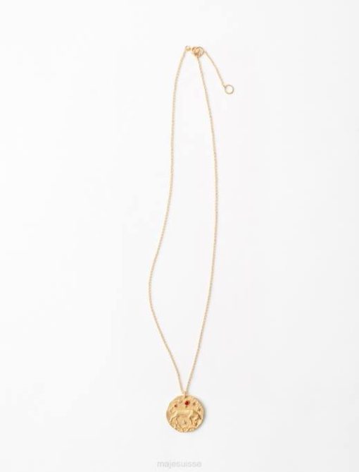 collier avec médaillon du zodiaque, incrusté de cristaux étincelants avec finition martelée et liseré rosé. réalisée en trois dimensions selon un savoir-faire unique, la pièce est gravée au dos d’un m de style art déco, l’emblème de maje. une pièce avec un esprit naturel et authentique durable.