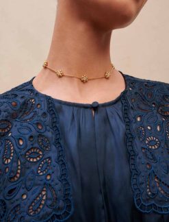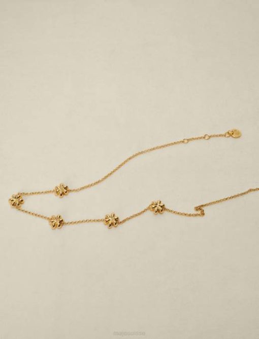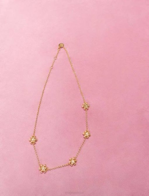 Les fleurs de la saison feront leur apparition autour de votre cou sous la forme d’un délicat collier chaîne en laiton doré. il comporte deux boucles d’extension vous permettant d’ajuster la longueur.