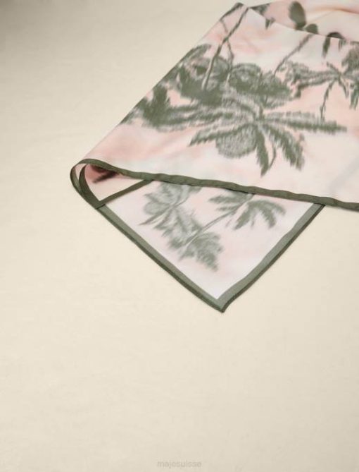 Complétez votre look en enroulant ce foulard en soie autour de votre cou ou de l’anse de votre sac maje préféré. il arbore l’imprimé star de la saison : le palmier.