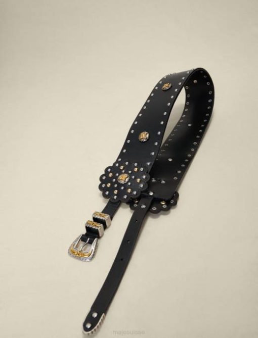 doté d’une bandoulière réglable et décoré de fleurs cloutées découpées. cette ceinture corset est parfaite pour définir la taille sur une robe fluide ou un chemisier aérien.
