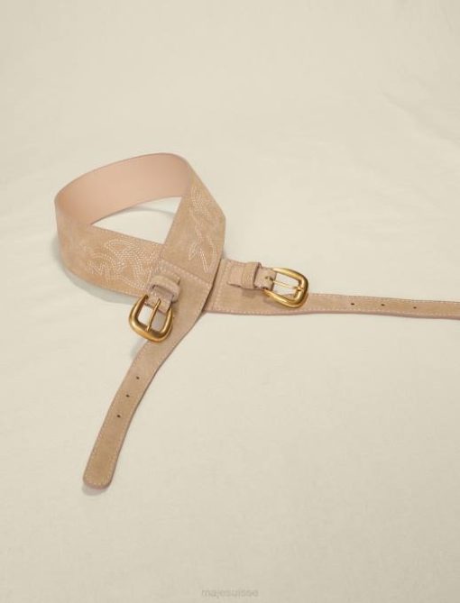 cette ceinture beige à double boucle est l’une des pièces phares de cette saison. il est délicatement brodé et la taille haute lui donne du style. il dispose de 3 trous pour ajuster la taille.