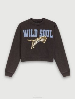 vêtements H604401 gris femmes sweat-shirt en coton imprimé Maje
