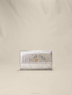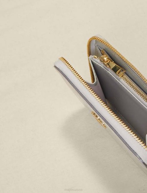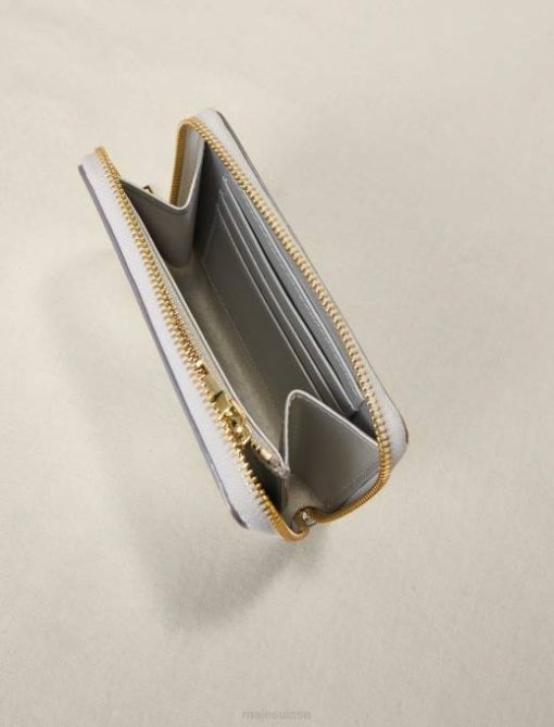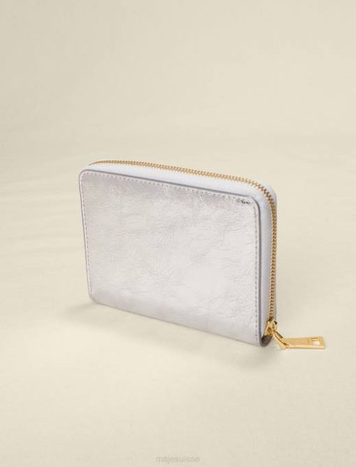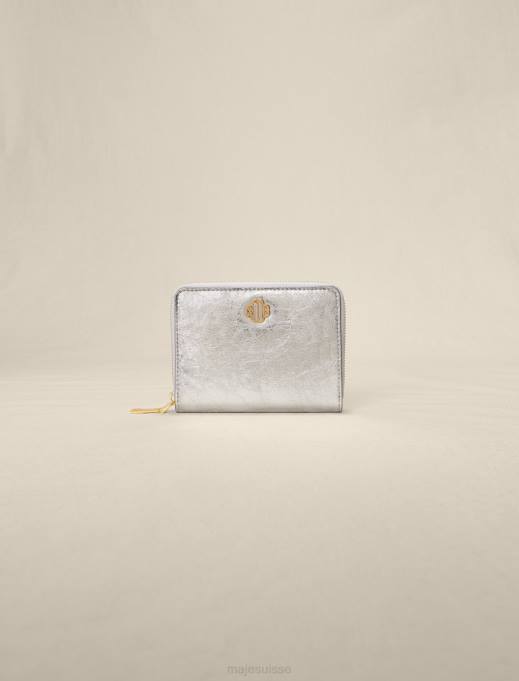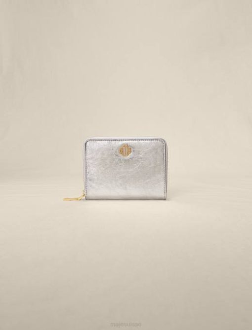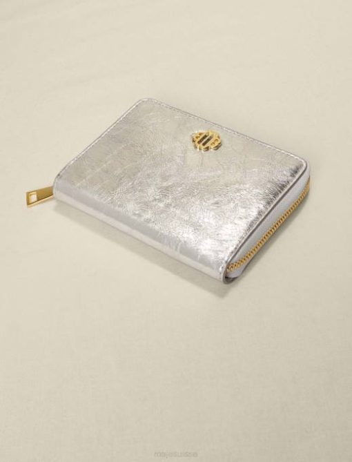 Portefeuille en cuir de veau métallisé. il pourra contenir de la monnaie dans sa poche plaquée zippée, des cartes dans les 3 compartiments, ainsi qu’un passeport ou d’autres documents. il est agrémenté d’un logo double m doré.