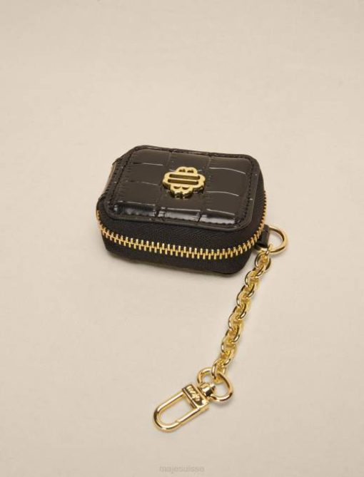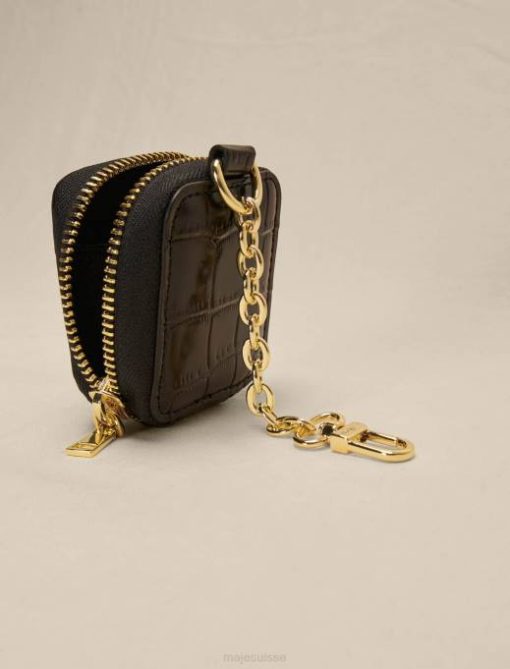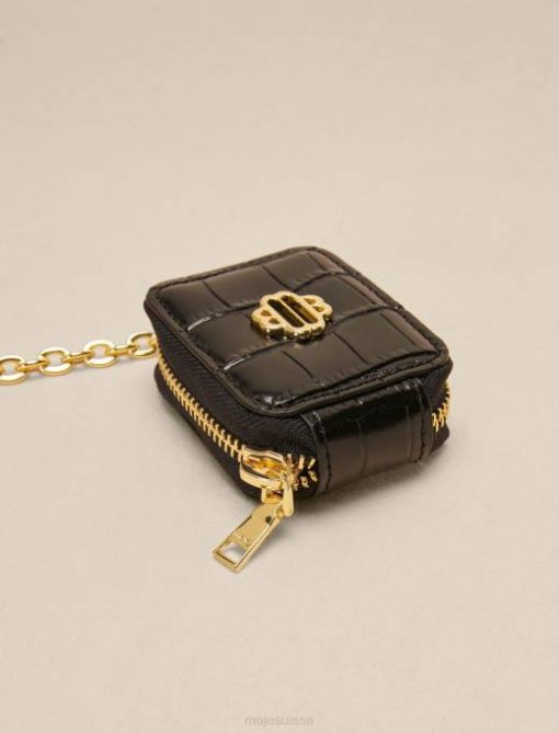 un petit porte-monnaie à emporter partout avec vous. réalisé en cuir embossé et doté d’une étiquette en forme de trèfle, ce petit sac à main est complété par une petite chaîne et un mousqueton.