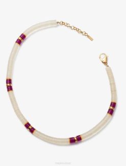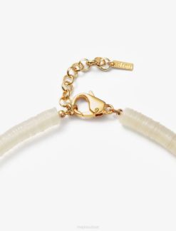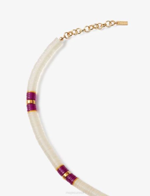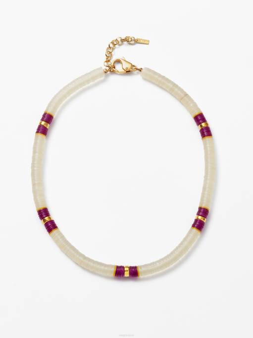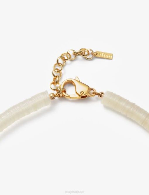 orné de perles rondes et plates en éthylène-acétate de vinyle, ainsi que de perles plaquées or, ce court collier tendance est une touche finale de caractère à vos looks d’été. entièrement réalisé à la main, il possède un fermoir réglable vous permettant de le porter long ou court selon votre style. portez-le avec le deuxième collier de cette collaboration exclusive et avec l’ensemble haut et pantalon en maille pour un look complet.
