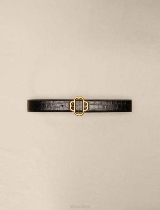 cette large ceinture en cuir gaufré dotée d’une boucle trèfle permet de structurer une blouse ample ou une robe fluide et de mettre en valeur votre taille.