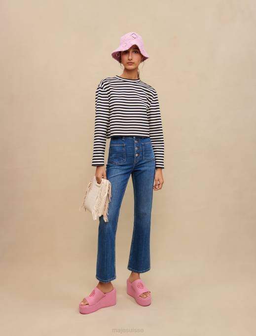 vêtements H604101 bleu femmes jean avec détails tressés Maje