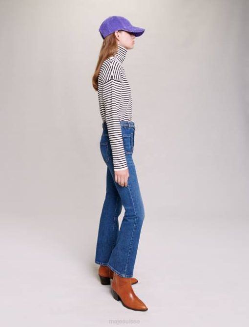 Jean taille mi-haute légèrement évasé en denim délavé. boutons en métal siglés Maje et zip dissimulé. détails tressés sur la ceinture et autour des poches plaquées sur le devant. poches à l’arrière. passants de ceinture.