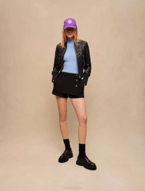 vêtements H604102 noir femmes short en trompe l’oeil avec détails Maje
