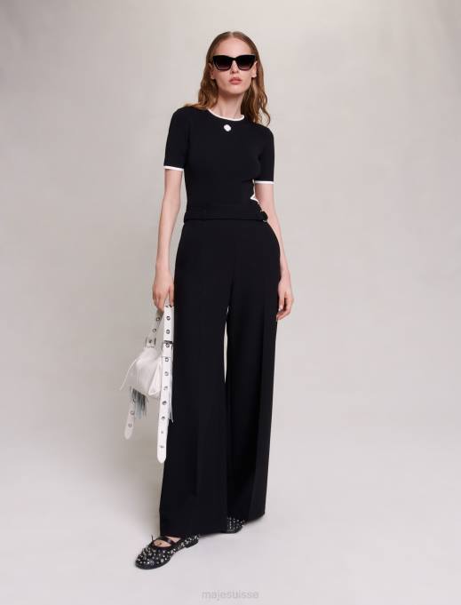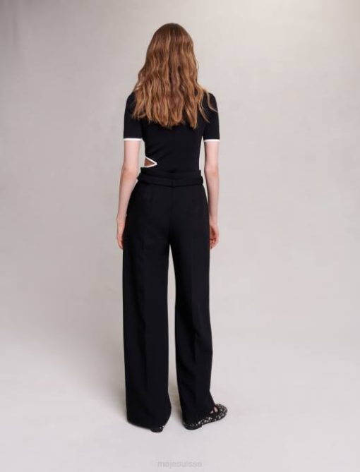 vêtements H604117 noir femmes pantalon large avec ceinture Maje