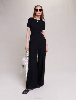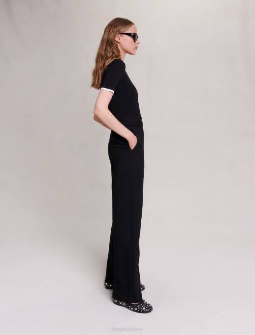 vêtements H60447 noir femmes pantalon en maille côtelée Maje