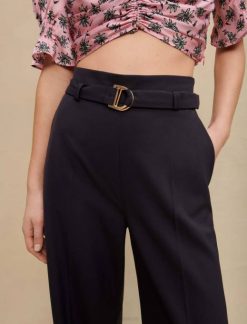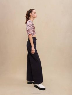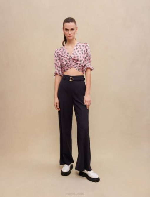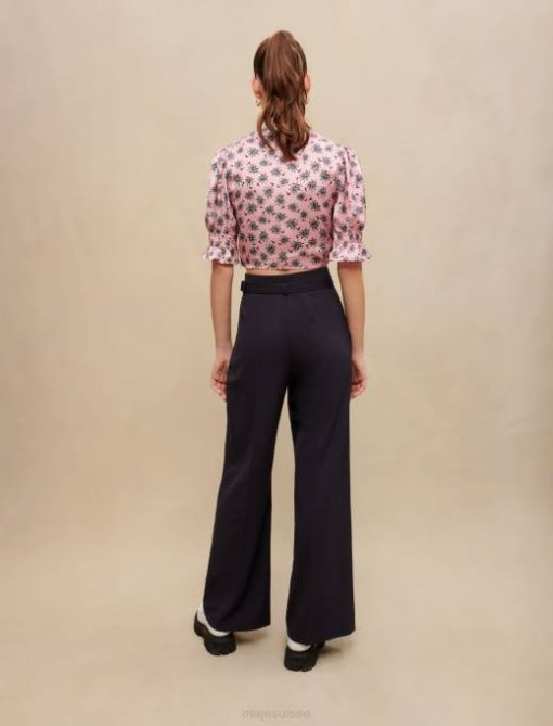 vêtements H604118 marine femmes pantalon large taille haute Maje