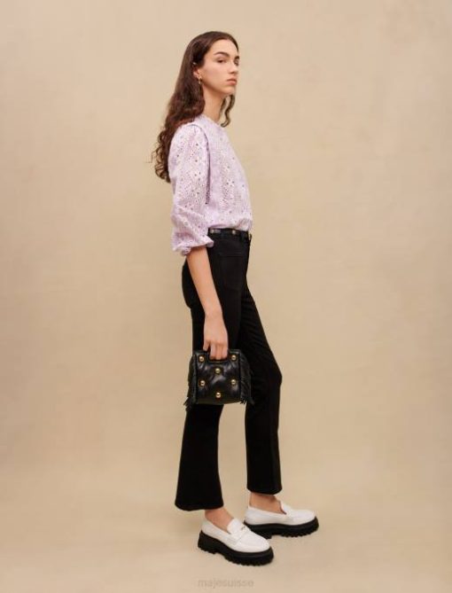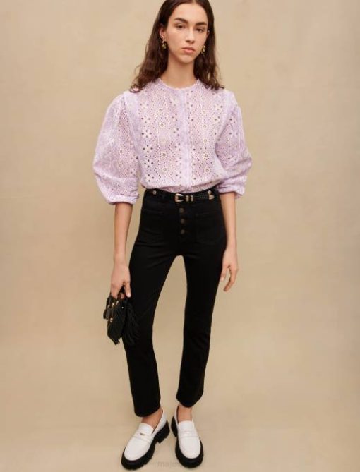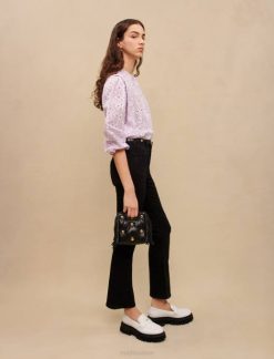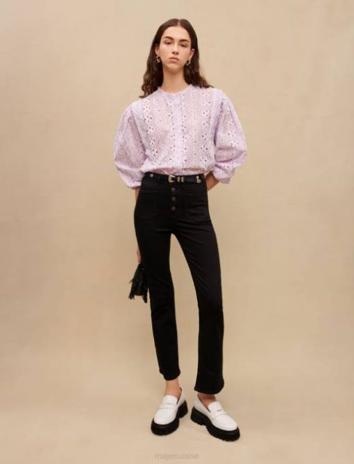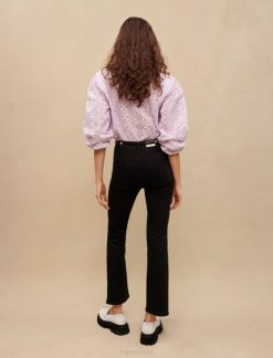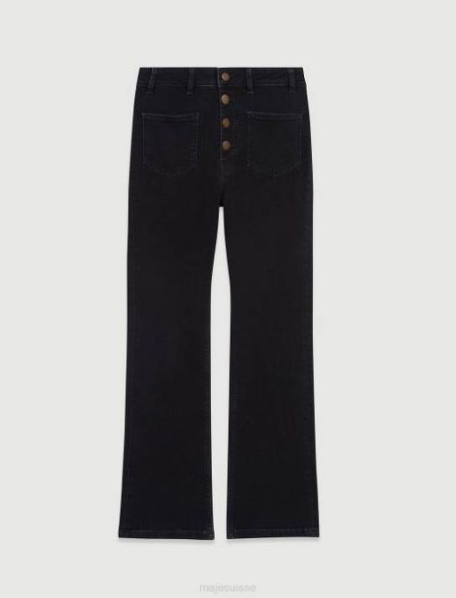 vêtements H604119 noir femmes jean évasé taille haute Maje