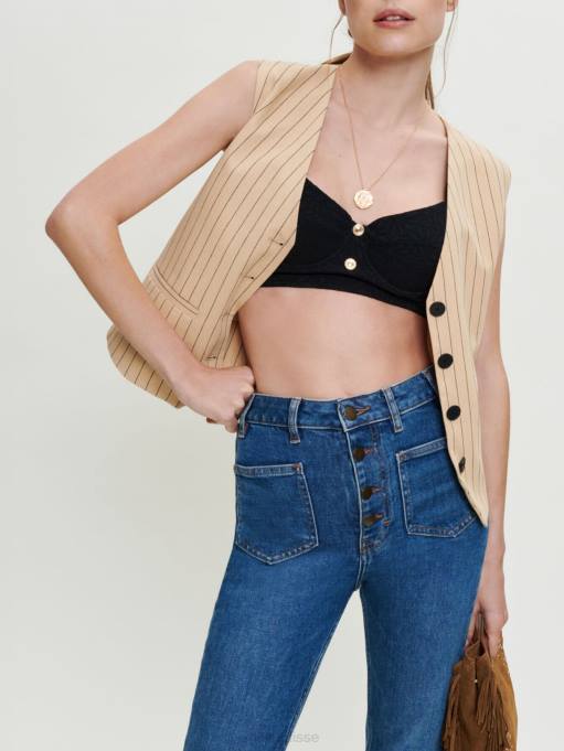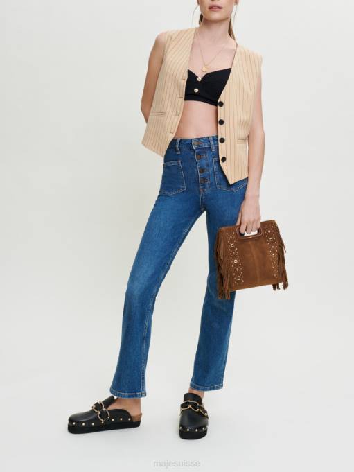 vêtements H604101 bleu femmes jean avec détails tressés Maje