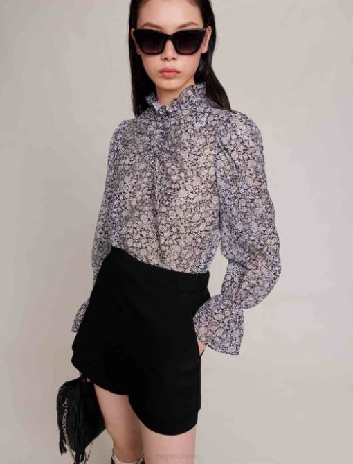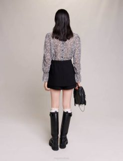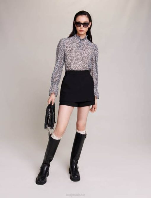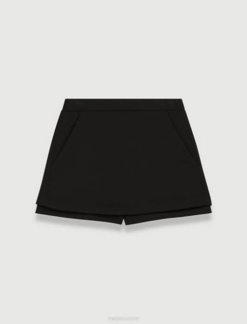 vêtements H604124 noir femmes jupe-short superposée en crêpe Maje
