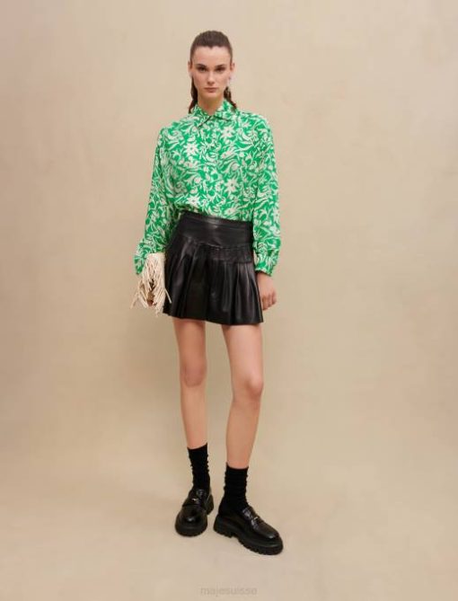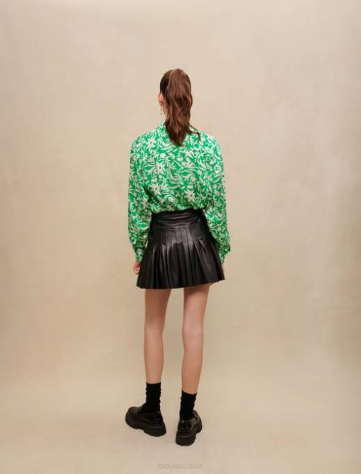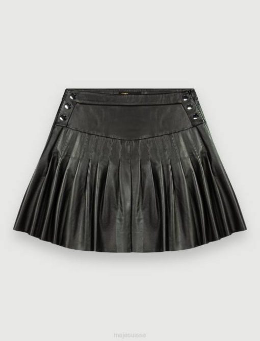 vêtements H604125 noir femmes jupe plissée et évasée en cuir Maje