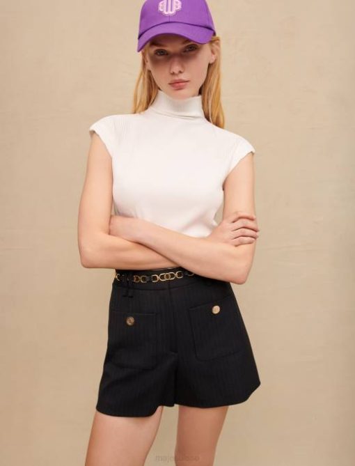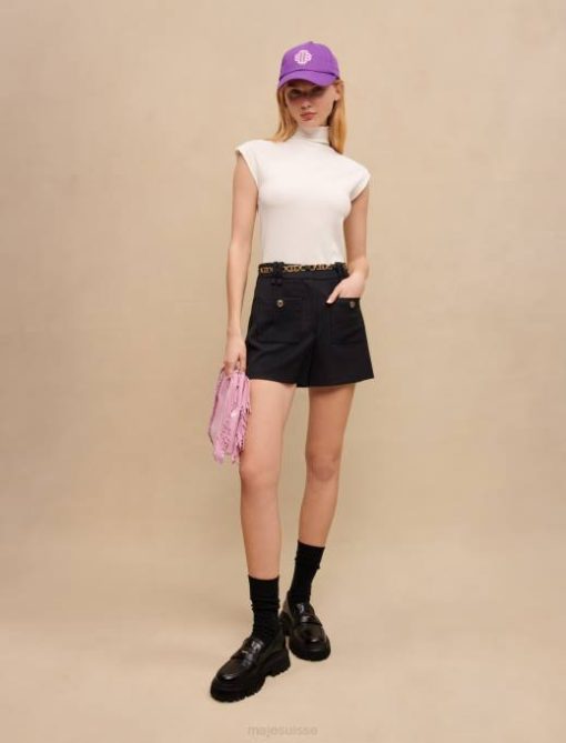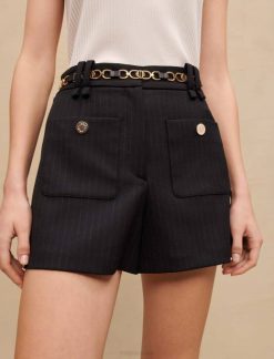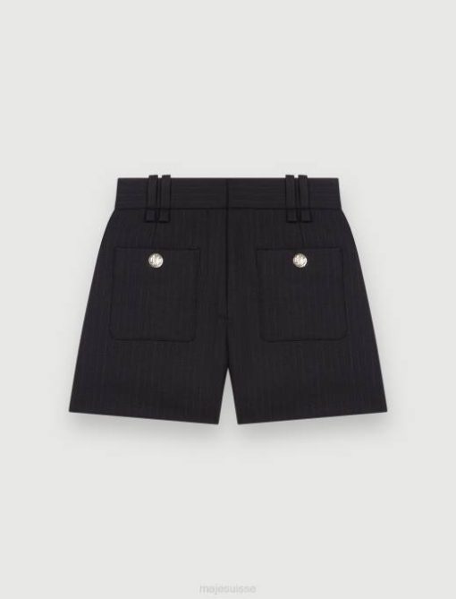 vêtements H604130 noir femmes short à rayures craie avec détails en métal Maje