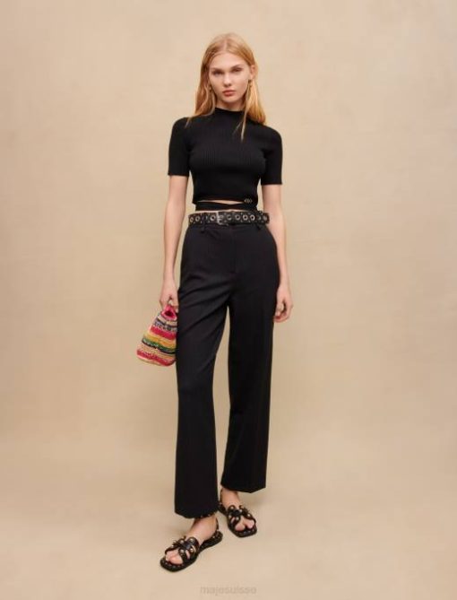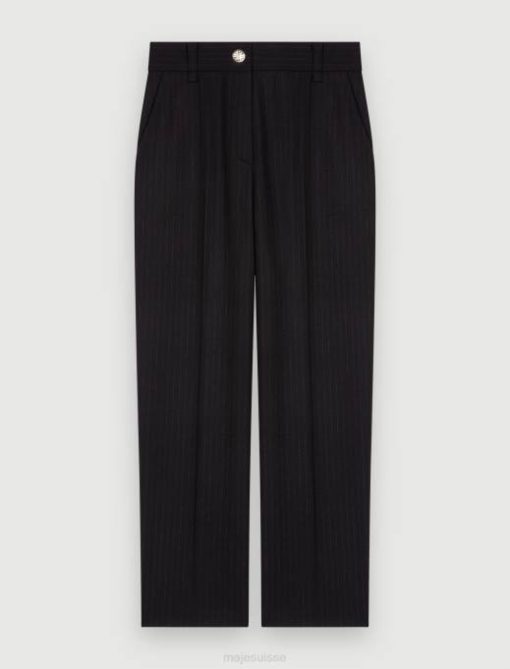 vêtements H604134 noir femmes pantalon de costume à rayures craie Maje