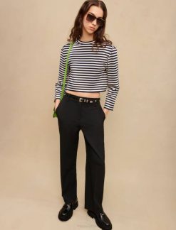 vêtements H604135 noir femmes pantalon de costume large noir Maje