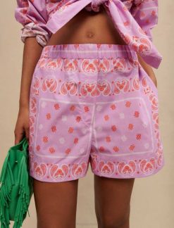 A l’approche de l’été, maje dévoile sa capsule inédite ”violet tropical”, avec à l’honneur l’incontournable imprimé cachemire. cette collection exotique et colorée a été conçue comme une ode au voyage, une invitation au mélange de pièces phares qui enchanteront encore plus la plus belle des saisons. L’incontournable imprimé bandana apparaît en orange sur ce short en coton léger, que vous pourrez porter avec la chemise assortie. il possède une taille élastiquée et s’associera avec tous vos looks d’été. enfilez-les par-dessus un maillot de bain et portez-les avec la chemise assortie pour un total look cachemire. accentuez votre look estival en ajoutant des accessoires tendance, comme un sac signature à franges, des sandales en strass ou des bijoux artisanaux issus de la collaboration entre maje et eliou.