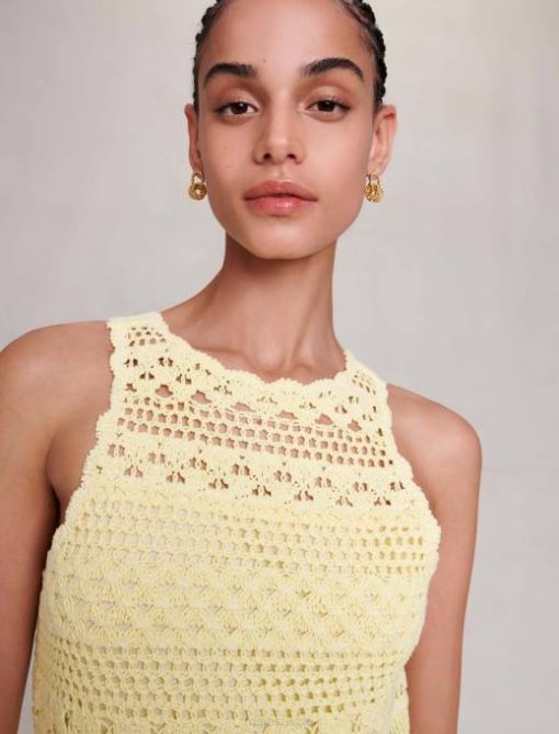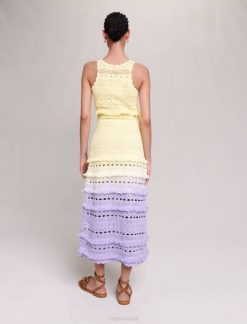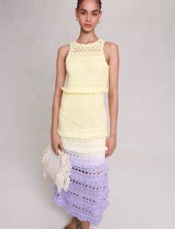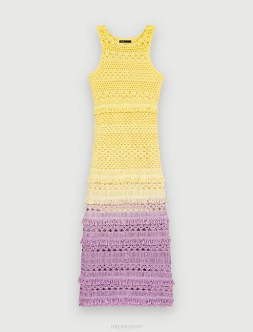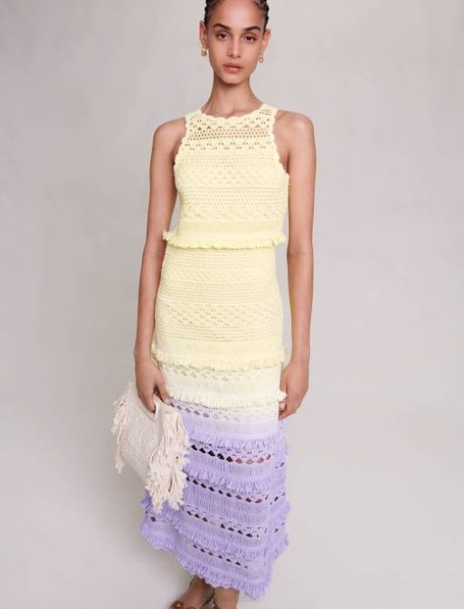 miss Sunset est la collection d’été la plus sexy de Maje, pleine de tenues de fête sophistiquées. faciles à accessoiriser, ces pièces marquantes se portent aussi bien à la plage qu’en soirée, du lever au coucher du soleil. Entièrement confectionnée en maille crochet, cette robe longue présente un dégradé de couleurs pour un look résolument estival. il présente un col rond avec des franges et des détails ajourés, pour un aperçu délicat de votre peau bronzée. idéal pour structurer avec style vos looks d’été, il crée une silhouette légère et ajustée. complétez votre tenue avec des accessoires de caractère et agrémentez-la d’une paire de sandales à clous.