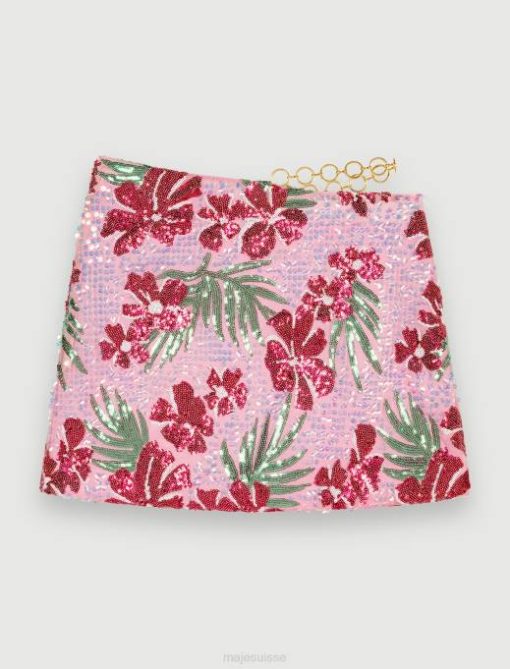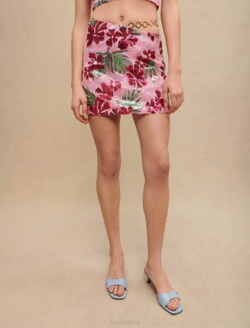 vêtements H604166 imprimé hibiscus rose femmes jupe courte Maje
