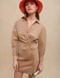 Délicatement drapée avec une fermeture boutonnée asymétrique, cette robe emblématique présente une taille ajustée, un décolleté en V et des manches longues. portez-le avec des bottines pour un look casual-chic.