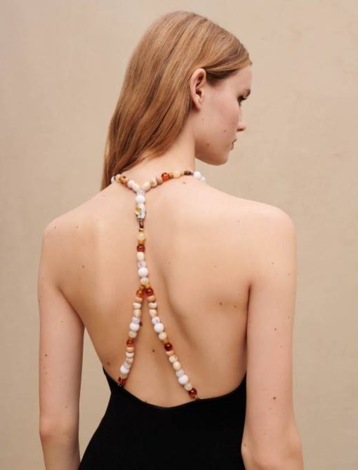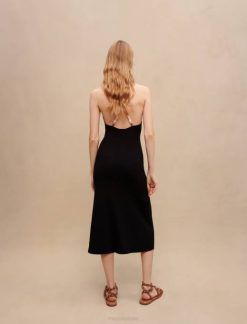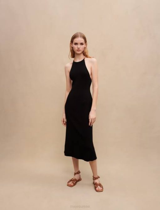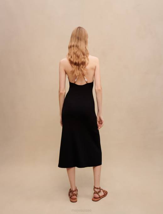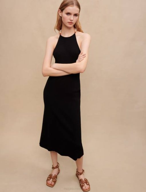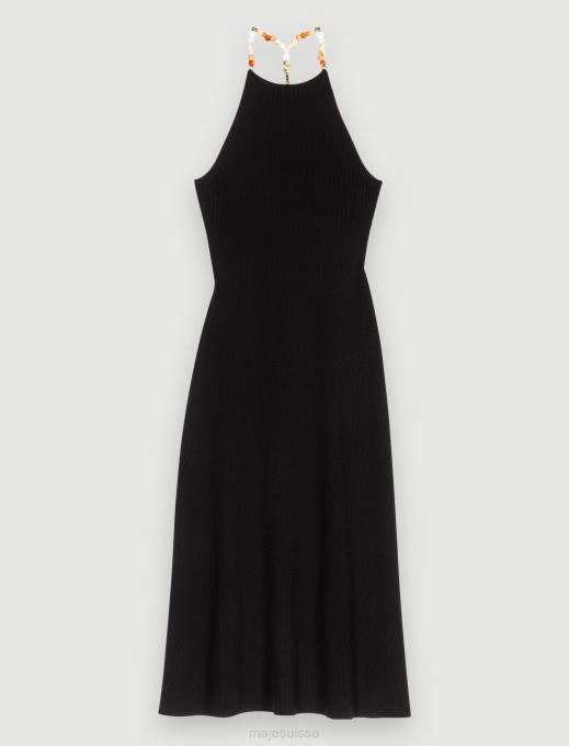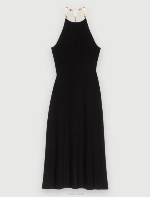 vêtements H604190 noir femmes robe longue avec détail chaîne Maje
