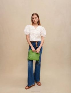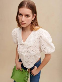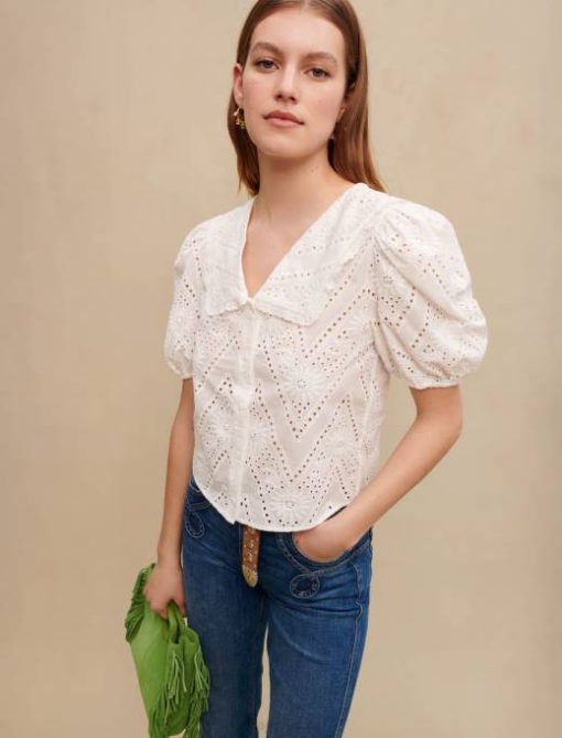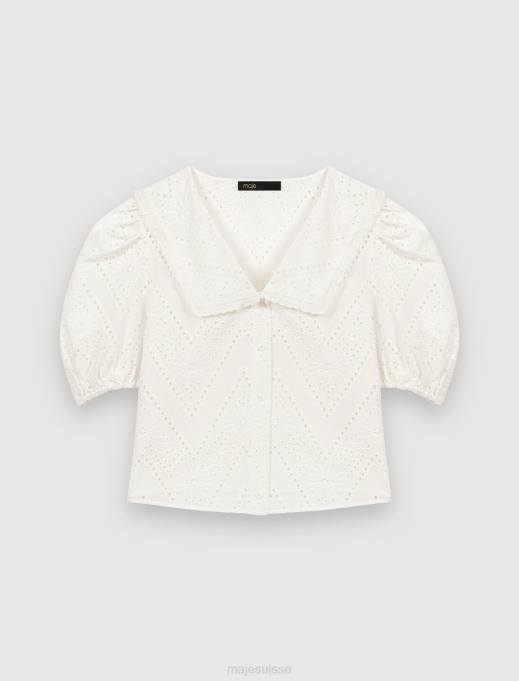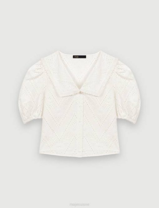 vêtements H604199 blanc femmes chemise courte brodée Maje