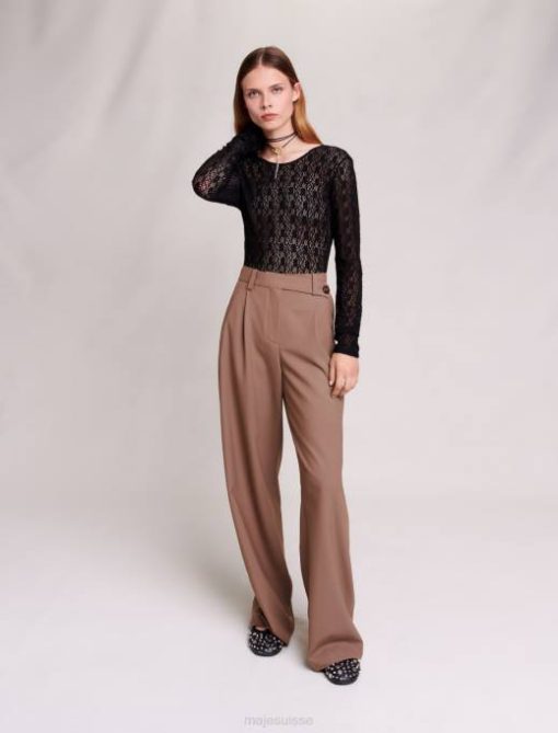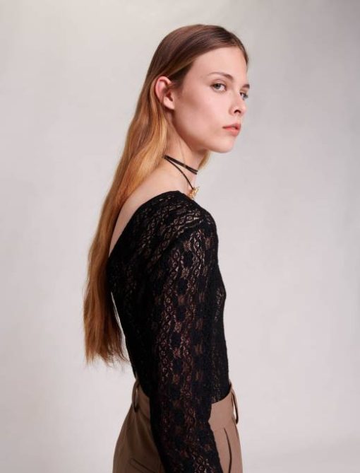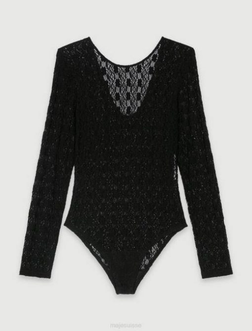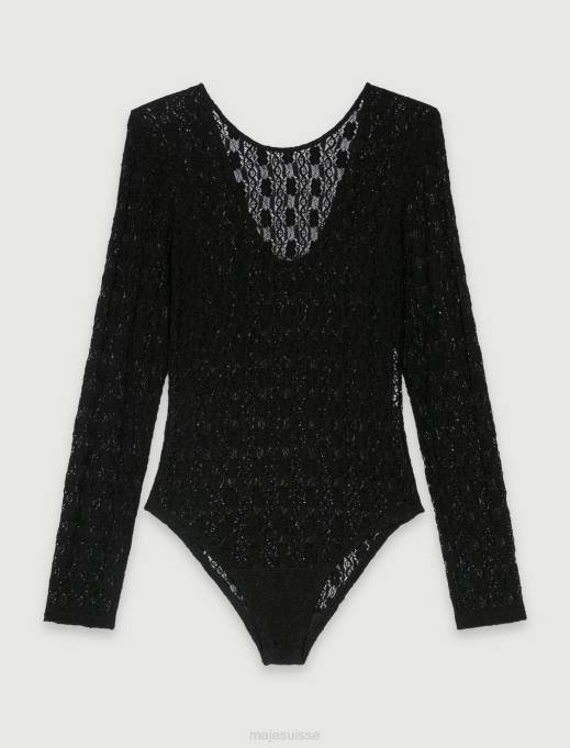 imprégnée de l’élégance british et du style rétro des années 70, la maje girl joue sur des pièces audacieuses et transparentes pour une silhouette résolument sexy. Orné de dentelle florale, ce body extensible et ajouré présente des détails transparents et révèle subtilement des aperçus de peau. Doté d’un col rond et de manches longues, il présente un dos échancré et une patte de boutonnage à boutons-pression. avec son look trompeusement preppy, il affiche une silhouette extrêmement sexy et une allure sophistiquée. Une pièce solide et polyvalente, elle s’adapte facilement à tous les styles. à associer avec un pantalon de costume, des ballerines cloutées et des bijoux.