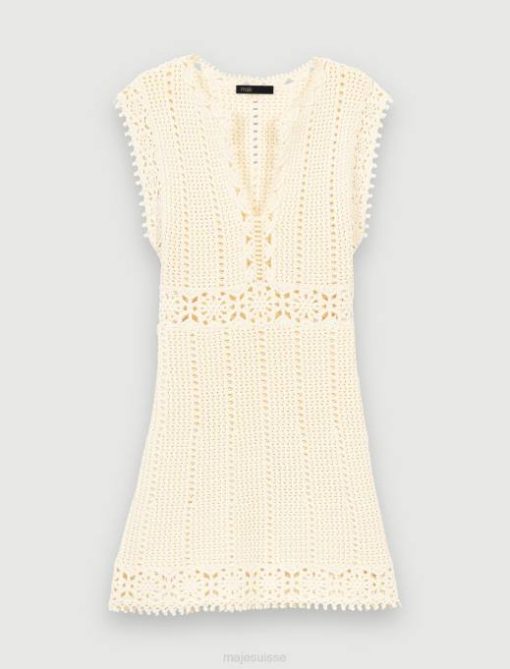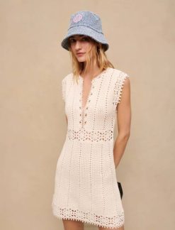 maje réinterprète les essentiels de l’été avec polyvalence. pour la ville ou la plage, des pièces à accessoiriser à volonté, offrant de multiples possibilités.associée à des silhouettes estivales, cette robe courte en crochet doublée dans le bas dévoile des motifs ajourés et une coupe structurée avec une jupe légèrement évasée.équipée d’un v rond ouvert. col et manches courtes, il dessine des finitions en bandes à motifs floraux ajourés sous la poitrine, en bas de jupe et sur les manches. Misez sur un complet look d’été en l’accessoirisant d’un chapeau et de sandales compensées, ou tentez un style plus habillé pour le soir en le structurant avec un blazer léger et des sandales compensées.