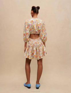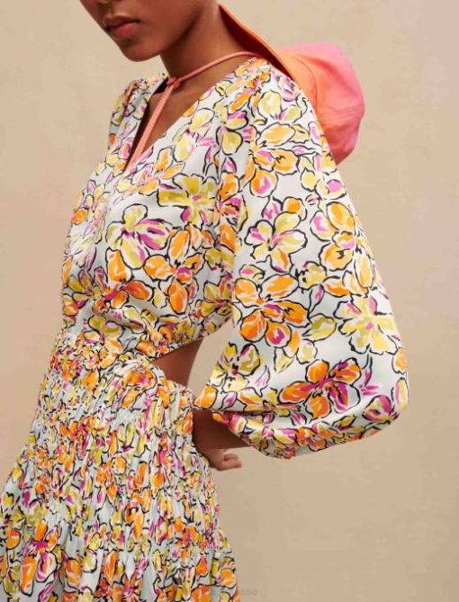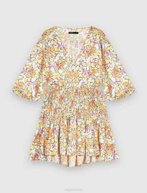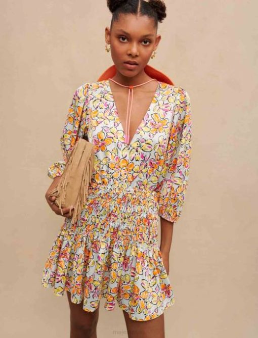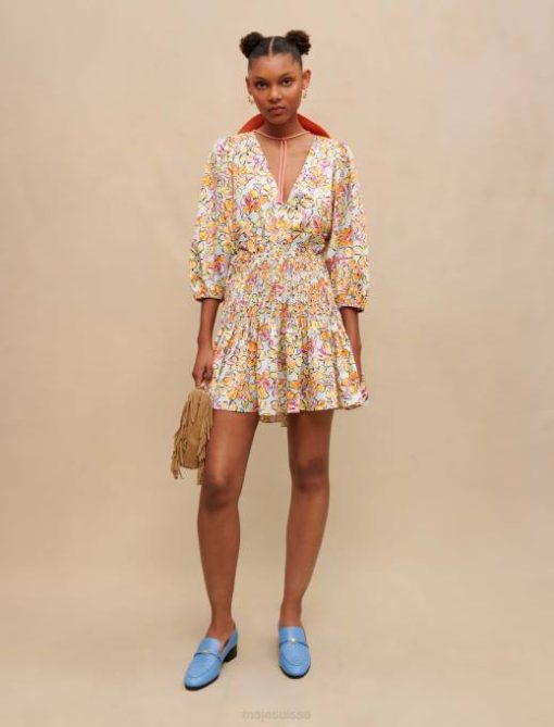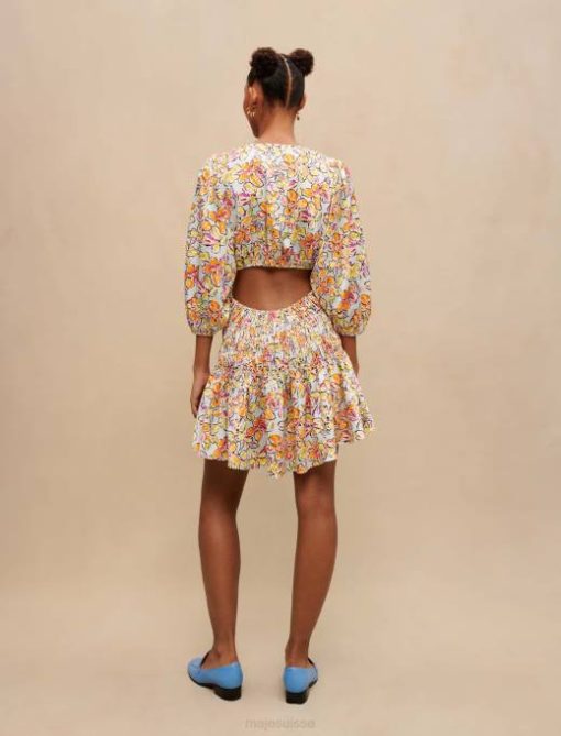 vêtements H604225 hibiscus bleu orange femmes robe courte imprimée à fleurs Maje