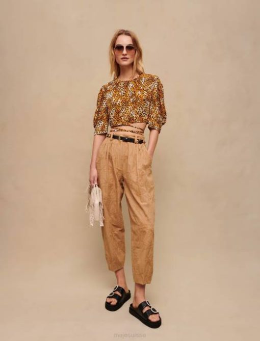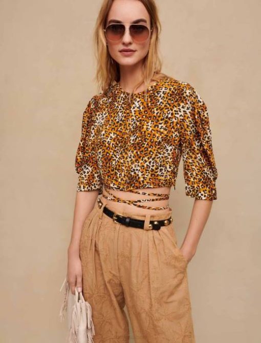 cette saison, maje revisite l’imprimé léopard sur des coupes ultra tendance, promettant des looks d’été aussi adaptés à la ville qu’à la plage. orné d’un imprimé léopard sauvage, ce top court aux manches trois-quarts volumineuses présente un ensemble de liens à nouer dans le dos qui soulignent la taille avec style. une pièce de caractère qui s’impose définitivement comme un incontournable de cette saison. Osez le porter dans des associations audacieuses avec un imprimé graphique contrasté ou un short en jean, ou optez pour un total look léopard avec la jupe assortie.