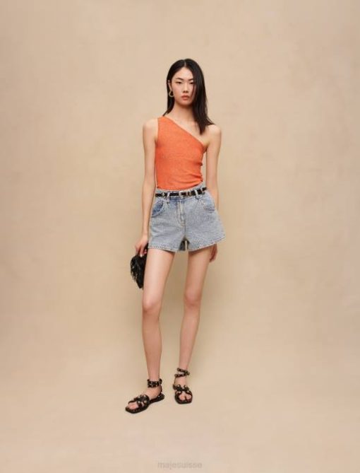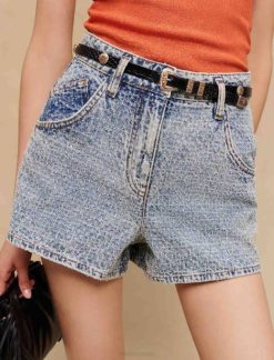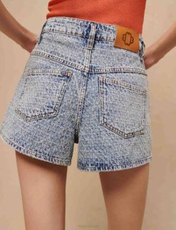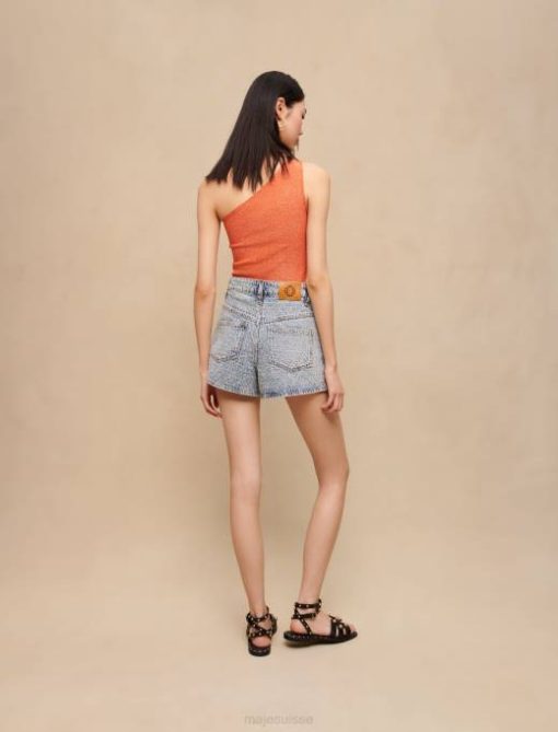 vêtements H604239 bleu femmes short en jean à strass et jacquard Maje
