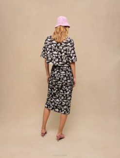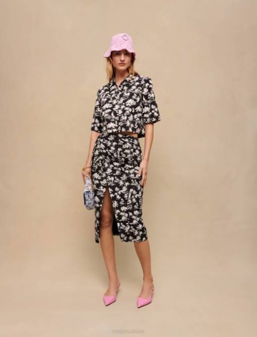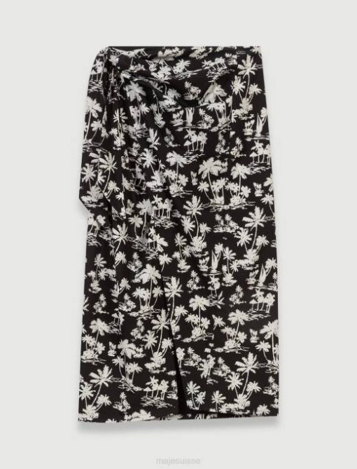 vêtements H604243 palmier noir femmes jupe portefeuille à imprimé palmiers Maje