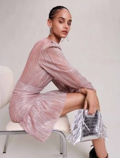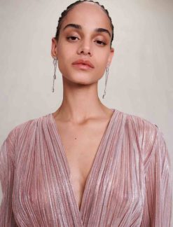 brillante et délicatement drapée, cette robe cache-cœur à manches longues attirera la lumière et assurera un look élégant et léger.