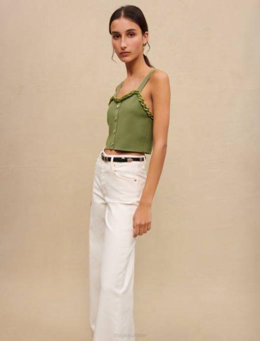 ce crop top orné de chaînes entrelacées en caoutchouc mat présente des boutons élaborés et peut être enfilé sous un blazer ou la veste assortie.